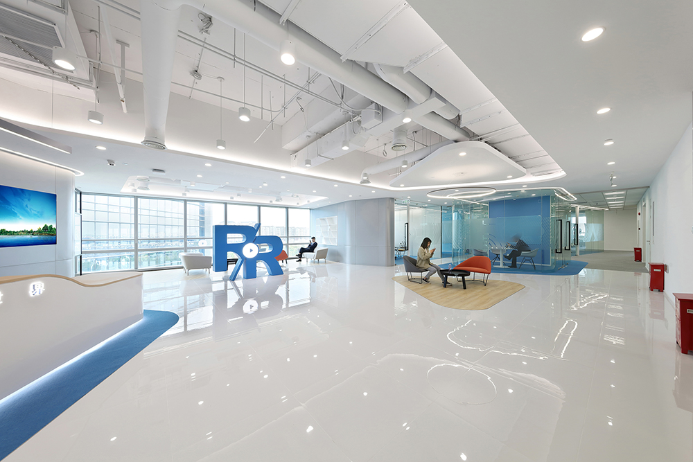 獵聘網,我們通常會在辦公空間中使用主色橙色,為他們的接待空間提供對比度和方向。